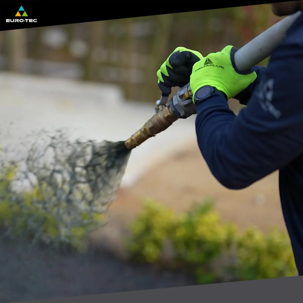 Efficient grass installation using a sprayed mixture of seed, wood fibre mulch, fertilizer, and water. Ideal for large areas, slopes, and difficult terrains.